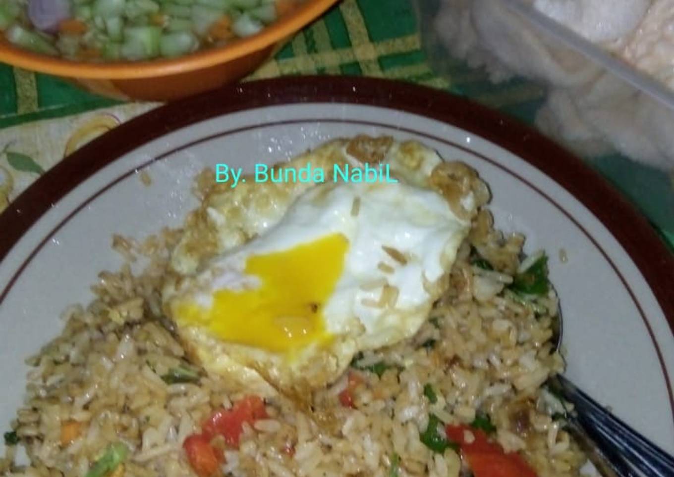 - Tips:gunakan api besar jika menggoreng nasi,krna rhsia nya di api ini,boleh masukan sawi,wortel,kubis,daging,sosis,daun bawang sesuai selera sj