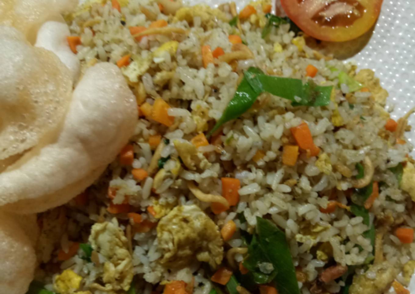 - 1 butir telur(goreng dan di orak arik)