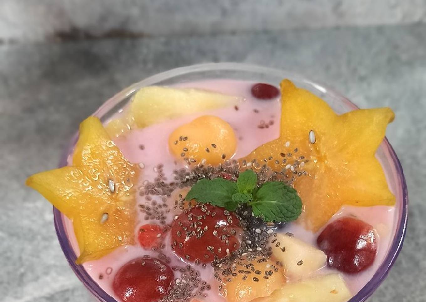 - Masukkan semua buah kedalam susu.