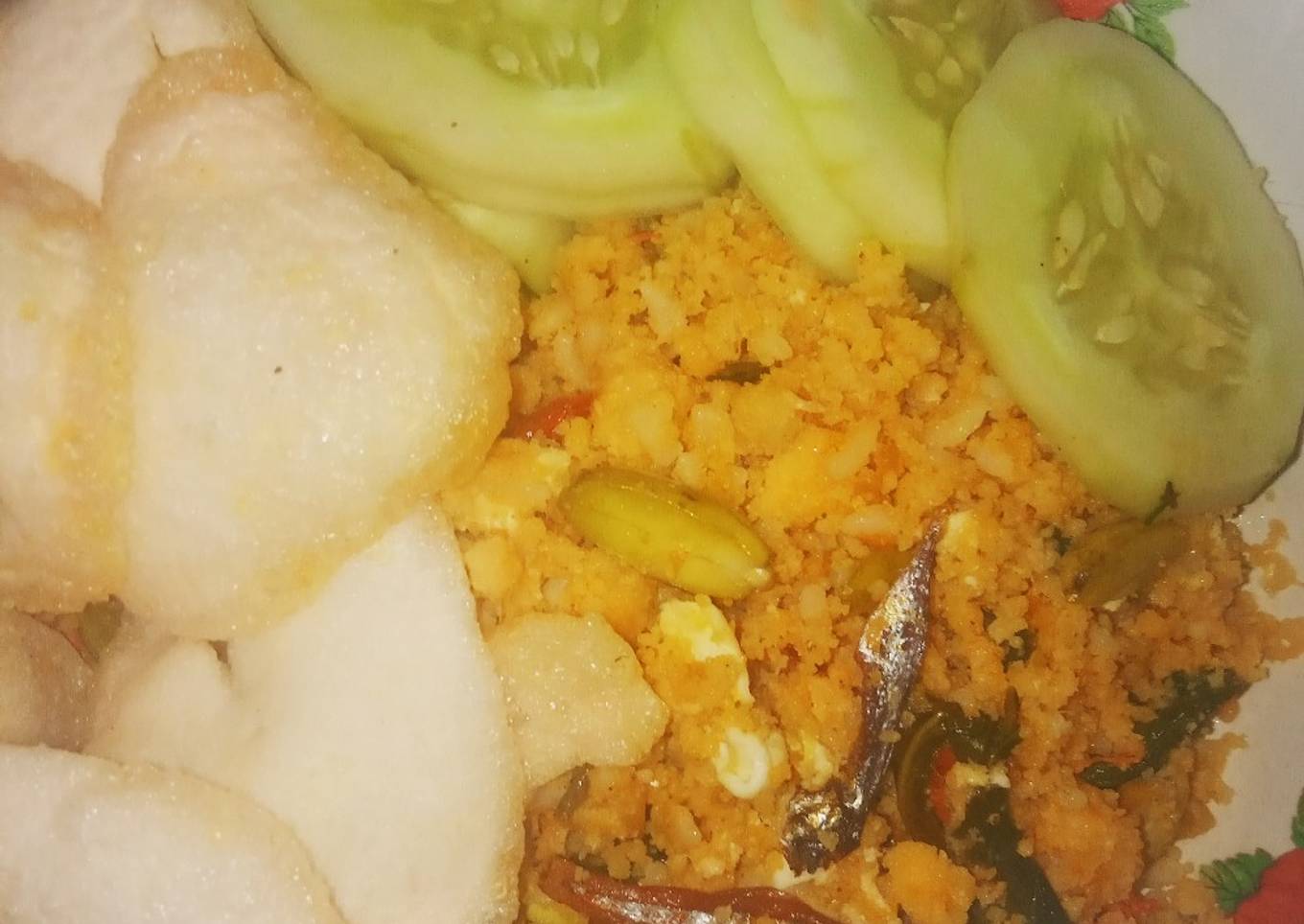 - Lalu masukan topping (orak- Arik telur,teri goreng,petai goreng rebusan sawi) lalu tumis lagi