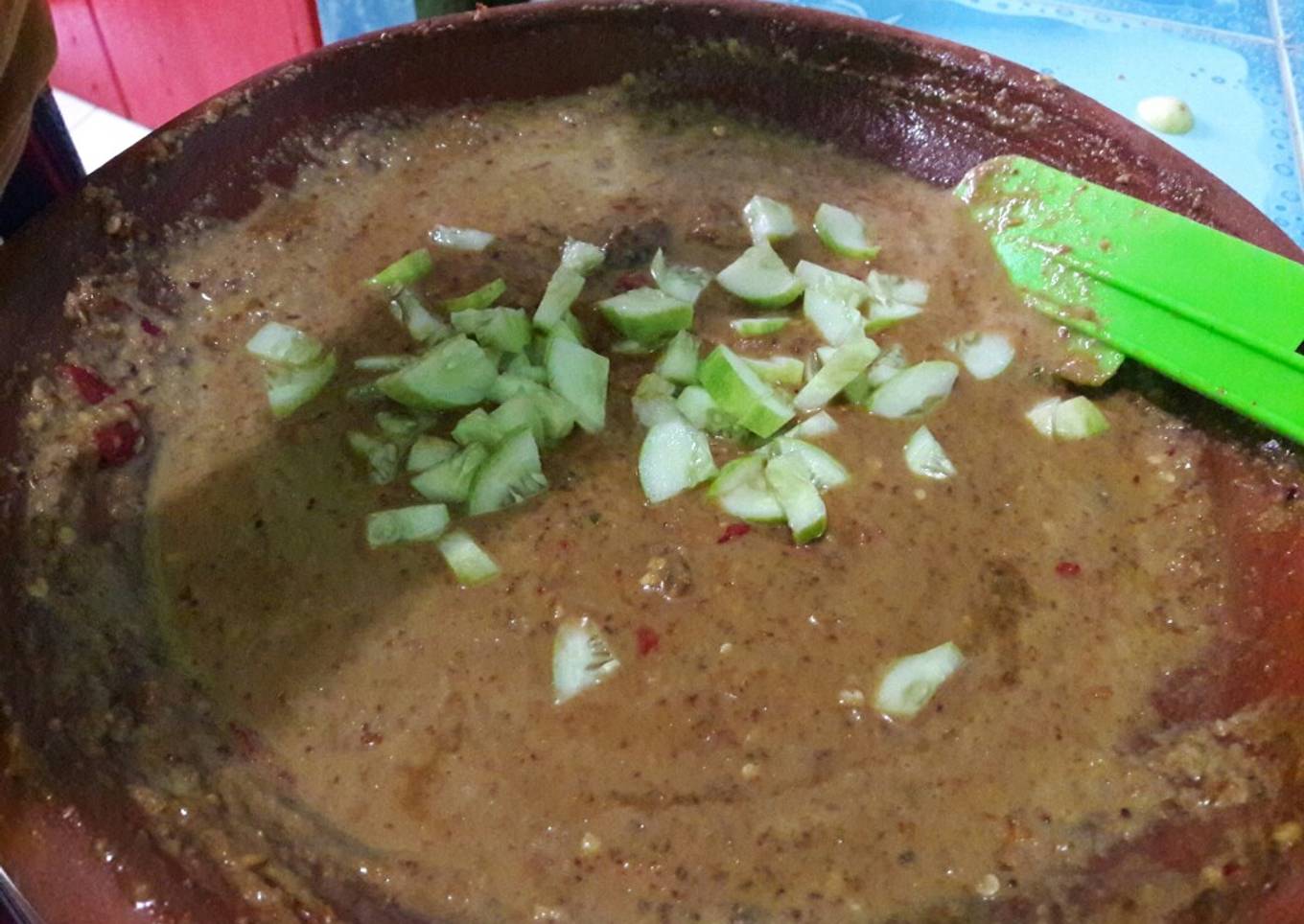 - Setelah itu masukkan Gula merah, asem, garam, mecin, uleni lagi...