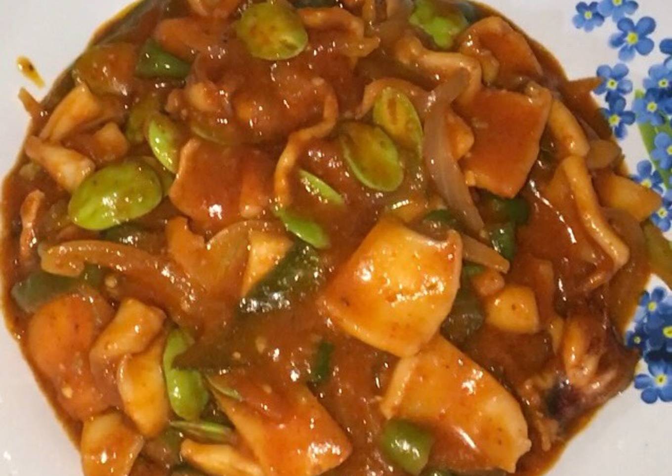 Langkah-langkah membuat Cumi+ Petai saos Padang spesial