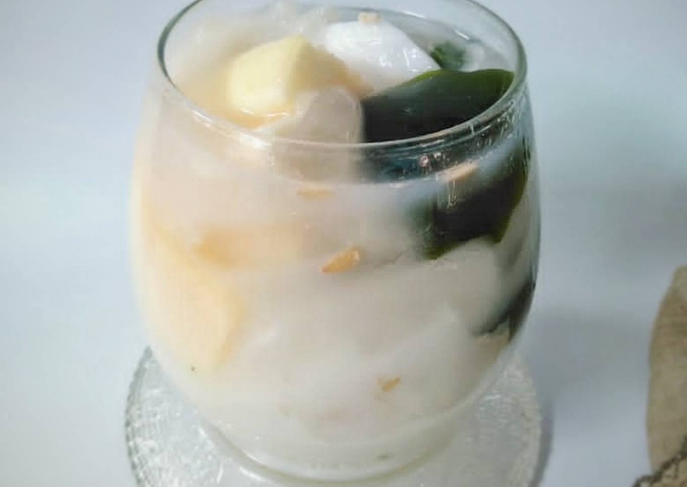 - Siapkan gelas, masukkan timun suri, daging kelapa muda, kolang kaling dan cincau.
