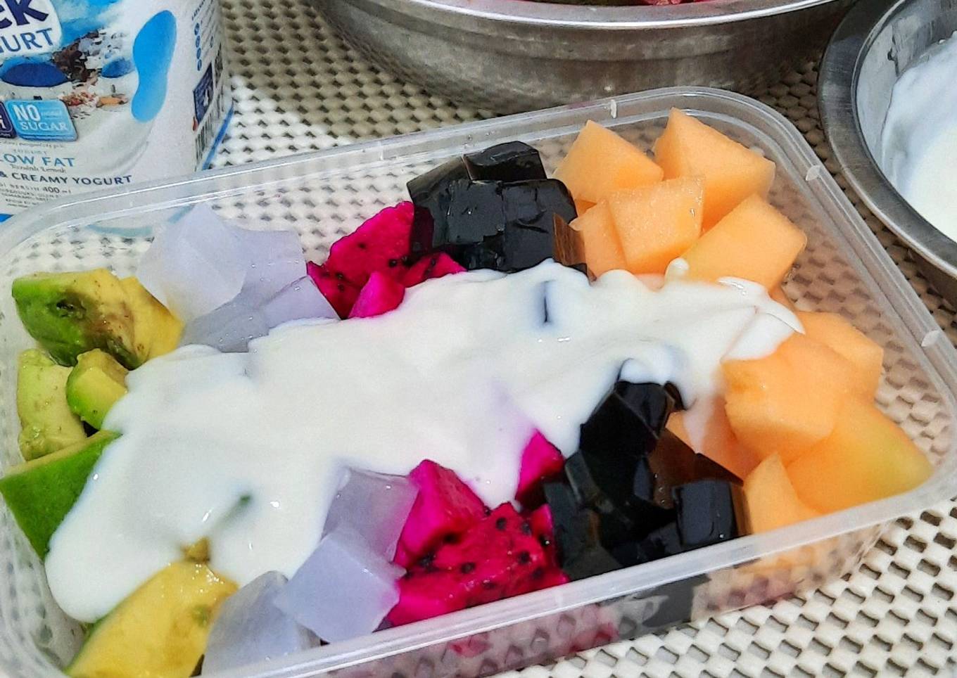 Kali ini Emak pake buah yang ada di kulkas ajaa.. Kuncinya di penggunaan vla nya, kali ini kita pakein full yoghurt plain ya Mak.. cuba cubaa.. 😊👍👍