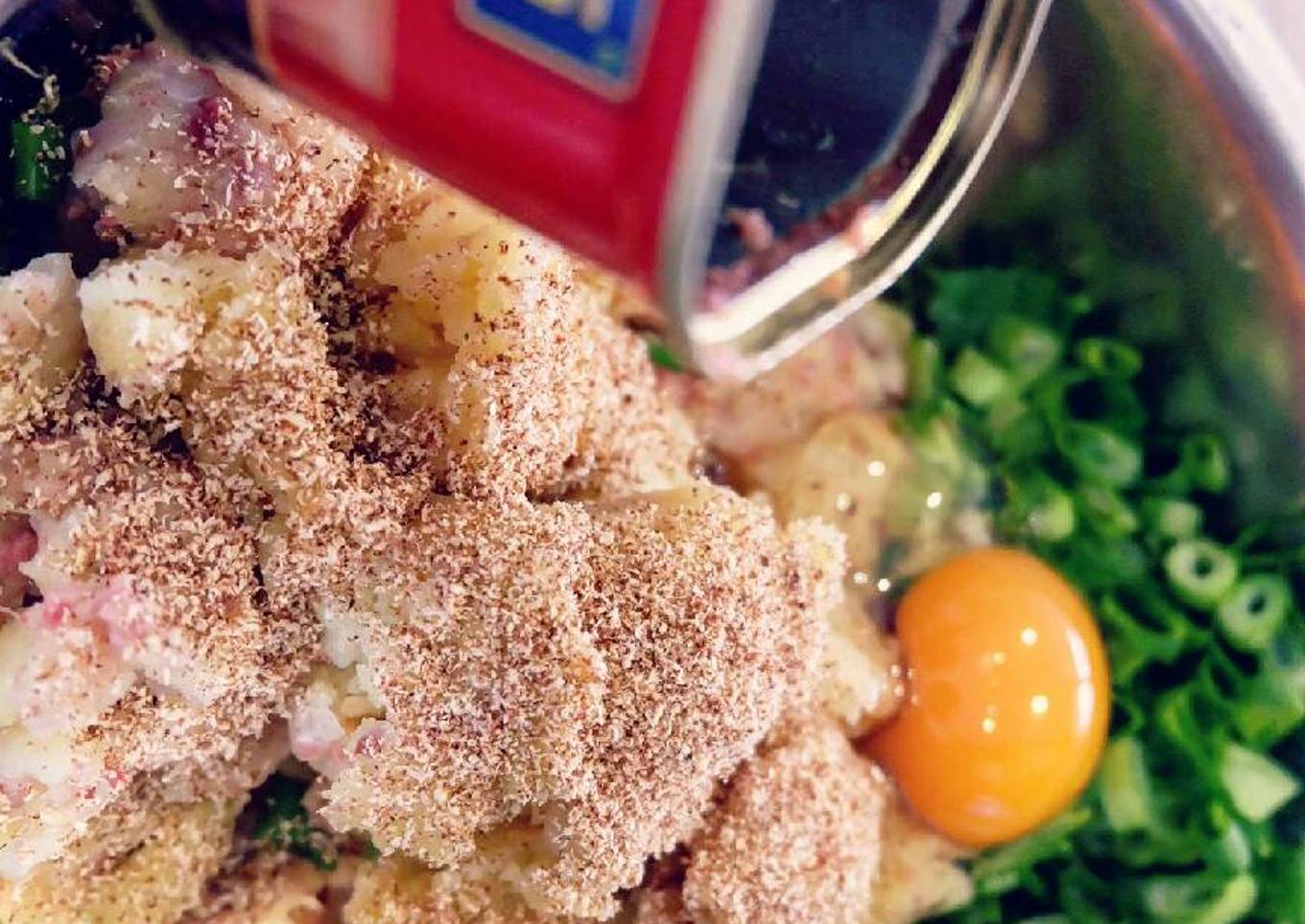 - Campur kentang yg telah dihaluskan bersama dengan telur, kornet, bawang merah goreng, bawang merah putih yg telah dihaluskan, daun bawang iris, daun seledri cincang, parutan pala, garam gula merica secukupnya